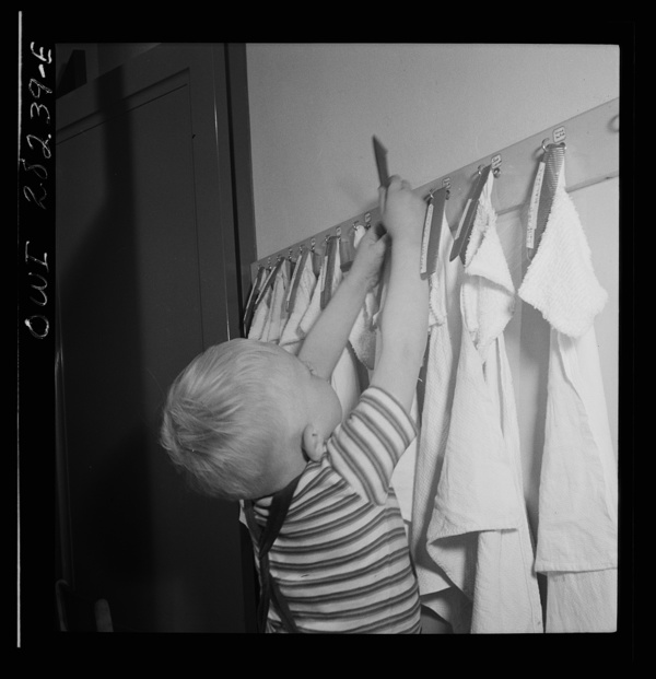 Buffalo, New York. Lakeview nursery school for children of working mothers, operated by the Board of Education at a tuition fee of three dollars weekly. Each child has own comb and towel, washes himself and combs his won hair