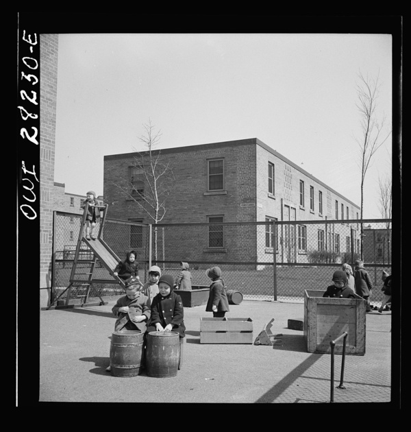 Buffalo, New York. Lakeview nursery school for children of working mothers, operated by the Board of Education at a tuition fee of three dollars weekly. Playing in the well-equipped yard