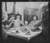 Niagara Falls, New York. War workers who live at Mrs. Hannegan's boardinghouse having supper at 5:30