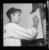 Bus trip from Knoxville, Tennessee, to Washington, D.C. Mechanics at work in the garage of the Tennessee Coach Company at Knoxville