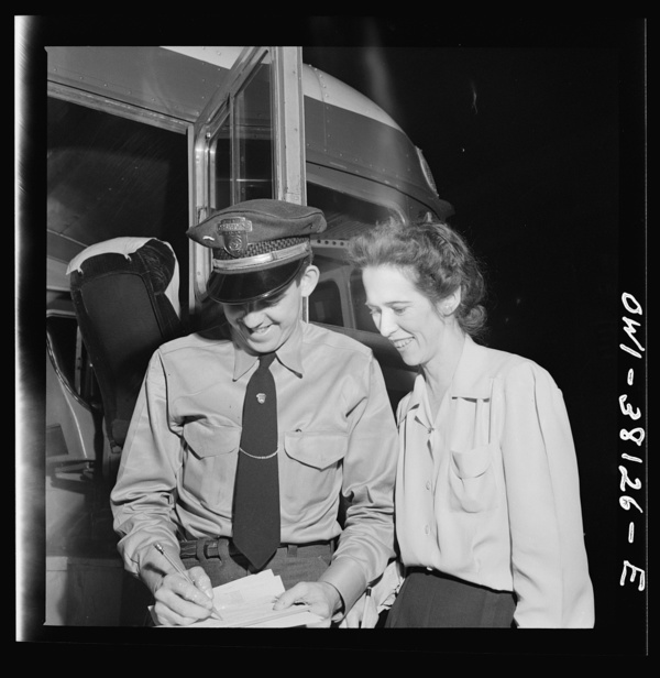 Bus trip from Knoxville, Tennessee, to Washington, D.C. Girl agent checking bag at Knoxville
