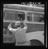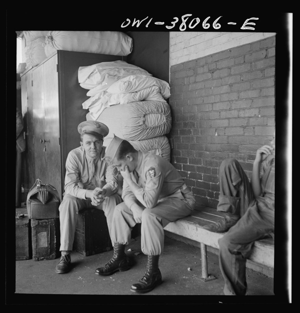 Bus trip from Knoxville, Tennessee to Washington, D.C. Auxiliary MP (Military Police) waiting for bus at Chattanooga, Tennessee