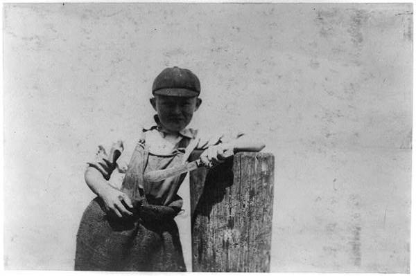 "I cut my finger off, cutting sardines the other day." Seven year old Byron. (See photo of family, #2353, and label.) Location: Eastport, Maine.