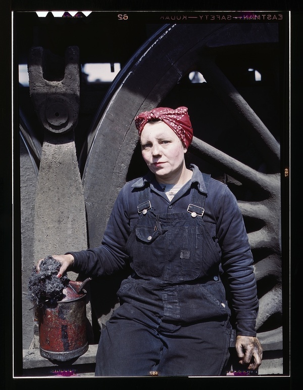 C. & N.W. R.R., Mrs. Marcella Hart, mother of three children, employed as a wiper at the roundhouse, Clinton, Iowa
