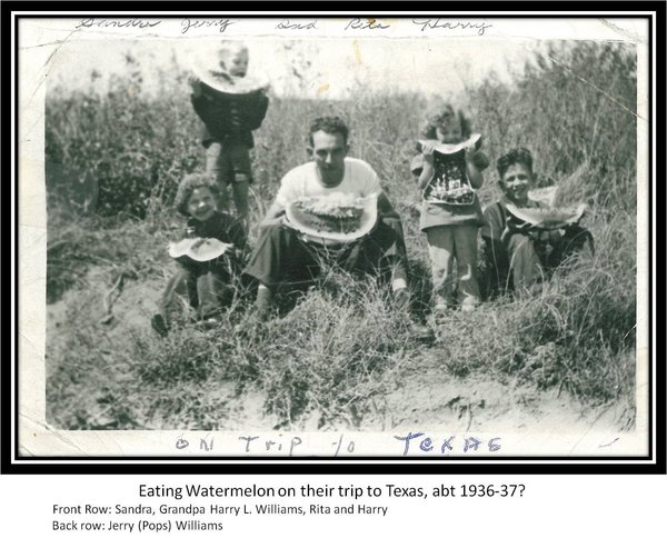 Eating Watermelon on their trip to Texas, abt. 1936-37