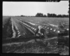 Irrigator in brushed and capped cantaloupe field. Imperial Valley, California