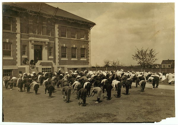 Calesthenics i.e., calisthenics Every day, every school in Lawton has 15 minutes of this out-door work. Location: Lawton, Oklahoma