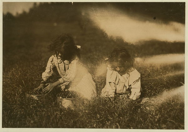 Camille Carmo, Justine Carmo, seven and nine years old. The older one picks about 4 pails a day. Youngest was picking also. Location: Rochester vicinity Eldridge Bog, Massachusetts.