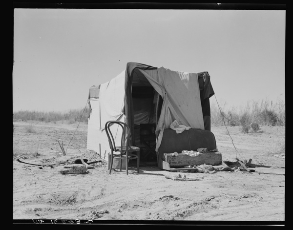 A mother in California who with her husband and her two children will be returned to Oklahoma by the Relief Administration. This family had lost a two-year-old baby during the winter as a result of exposure