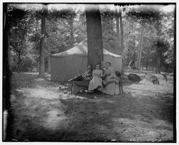 Dr. McClean, Helen Emmins, and Agnes Osborn, camping at Shoup's Mill, near Dayton, Ohio
