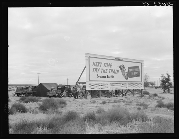 Camped in the rain behind billboard: three families, fourteen children. On U.S. 99. Near Famosa or Vamosa, Kern County, California