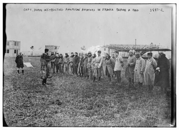 Capt. Hoppe i.e. Happe instructing American aviators in France before a raid