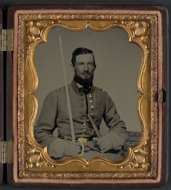 Captain David Thompson of Caldwell Minute Men (later Caldwell LIght Infantry); Company D, 1st Infantry Regiment 4th Division Missouri State Guard; and Company H, 2nd Missouri Infantry Regiment; holding sword