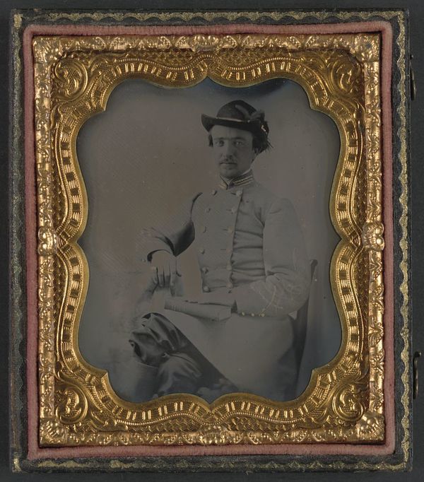 Captain William A. Hill of Company D, 4th Virginia Cavalry Regiment, with book on lap