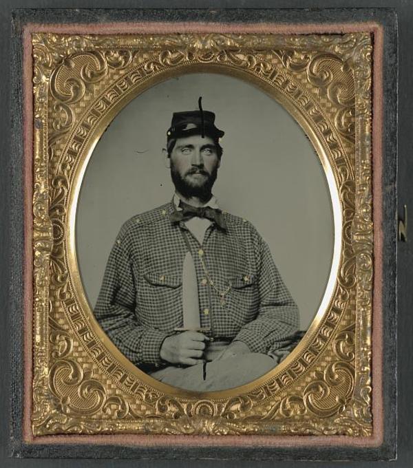 [Captain William H. Powell of Co. A, 33rd Virginia Infantry Regiment in uniform with Bowie knife]