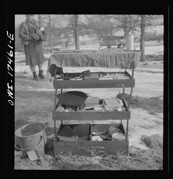 Carlisle, Pennsylvania. Demonstration before Army doctors and officer candidates at the U.S. Army medical field service school. Medical supplies and instruments are carried to the collecting station in chests which open up in this way