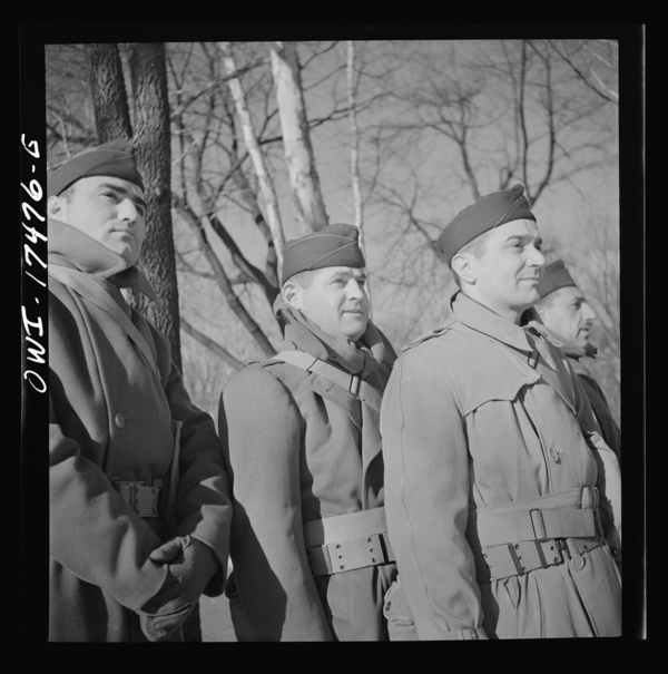 Carlisle, Pennsylvania. Demonstration before Army doctors and officer candidates at the U.S. Army medical field service school. Army doctors watching the demonstration in weather ten below zero