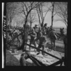 Carlisle, Pennsylvania. U.S. Army medical field service school. Officer candidates during a practice road march carrying full packs, disperse singly to side of road while being "attacked" by flour bombs