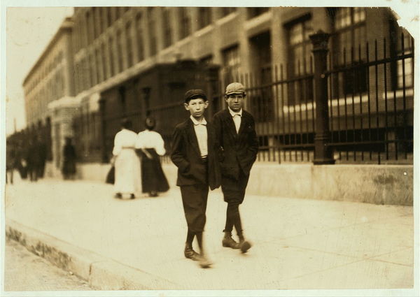 Carlo Chzy, Klondike Park, Andover, Mass. Morris Markowsky, 49 1/2 Common St. Both work in spinning room of Wood Mill. Morris is 14 years old. Location: Lawrence, Massachusetts.