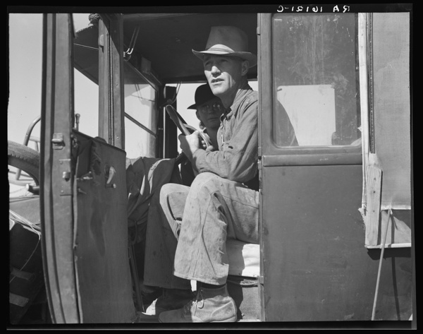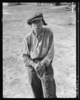 Carrot pullers from Texas. Texas farmer on edge of carrot field. In California for two weeks, migrating after three years of crop failures. Combined earnings, man and wife tying carrots: One dollar and twelve cents a day