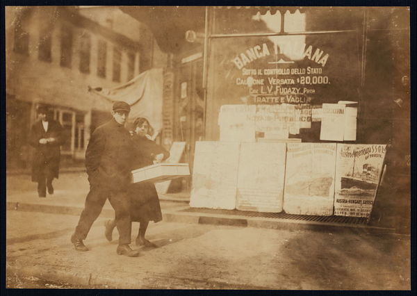 Carrying the flowers back to the factory. Bleeker St., N.Y. Location: New York, New York (State)