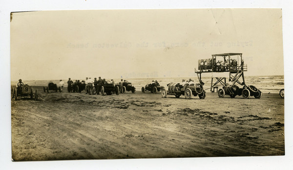 Cars ready for a race at the Galevston Beach Race "Track"