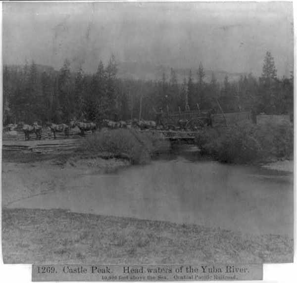 Castle Peak. Head waters of the Yuba River - 10,000 feet above the sea - Central Pacific Railroad