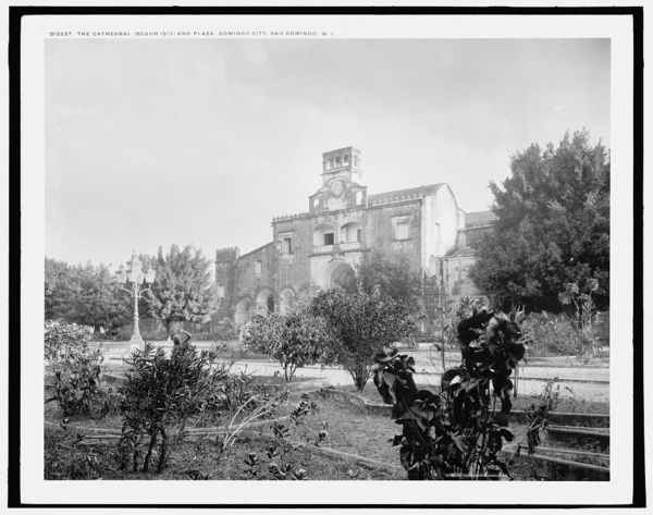 Cathedral (begun 1512) and plaza, Domingo City, San Domingo, W.I.