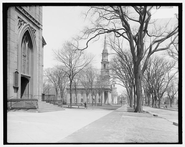 Students leaving Battell Chapel, Yale University, New Haven, Conn.