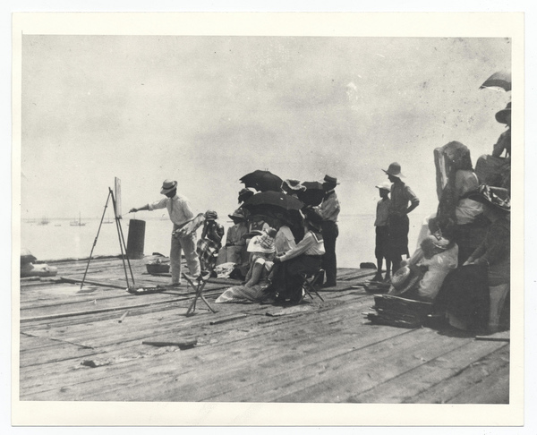 Charles Webster Hawthorne sketching with his class looking on.