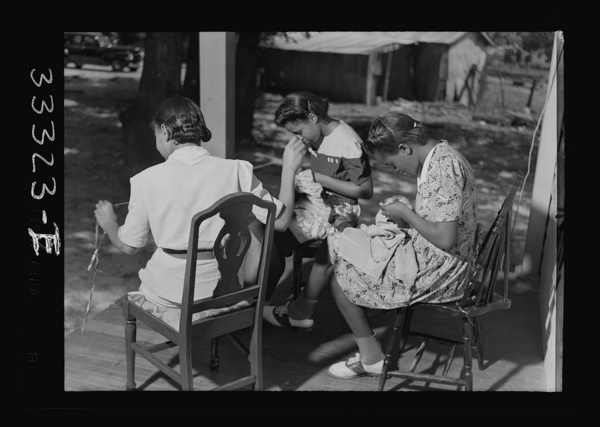 Charlotte Court House, Virginia. Central High School. Sewing on the front porch of home economics cottage