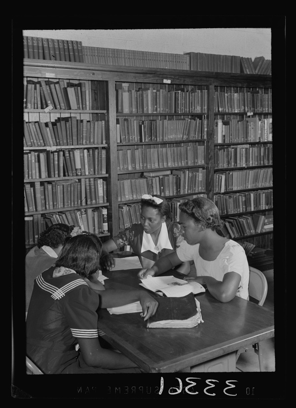 Keysville, Virginia. Randolph Henry High School. The library. The state pays half of the cost of the library, the local school board pays one quarter and one quarter is raised by the school
