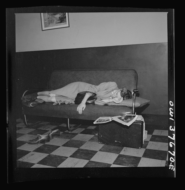 Chicago, Illinois. A girl who is waiting between buses in the ladies' lounge at four a.m. in the Greyhound bus terminal