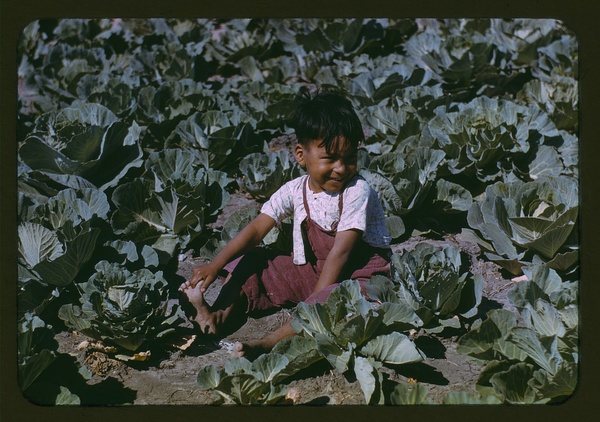 Child of a migratory farm laborer in the field during the harvest of the community center's cabbage crop, FSA labor camp, Tex.