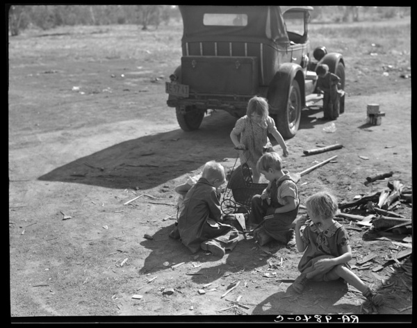 Drought refugees from Texas encamped in California near Exeter. Seven in family