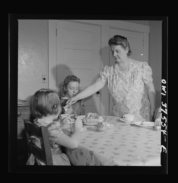 Cincinnati, Ohio. Mrs. Cochran, the wife of a Greyhound bus driver, giving the children Sunday breakfast