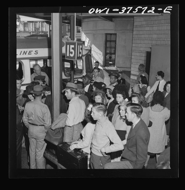 Cincinnati, Ohio. Passengers boarding a Greyhound bus at the bus terminal