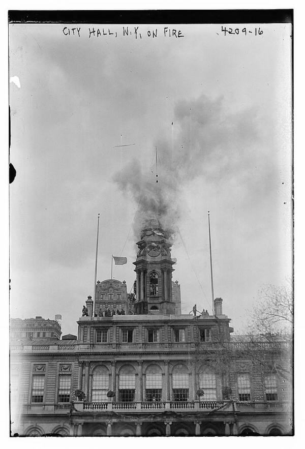 City Hall, N.Y. on fire