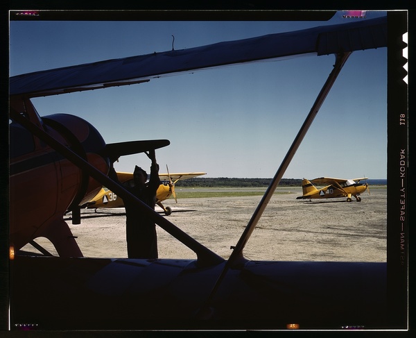 Civil Air Patrol Base, Bar Harbor, Maine. Ground crew making a routine overhaul of a patrol plane, Coastal Patrol #20