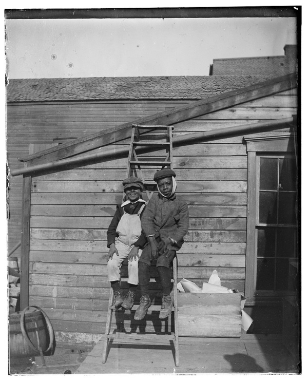 Daniel Henderson, neighbor, in front of Wright home at 7 Hawthorn Street, Dayton, Ohio