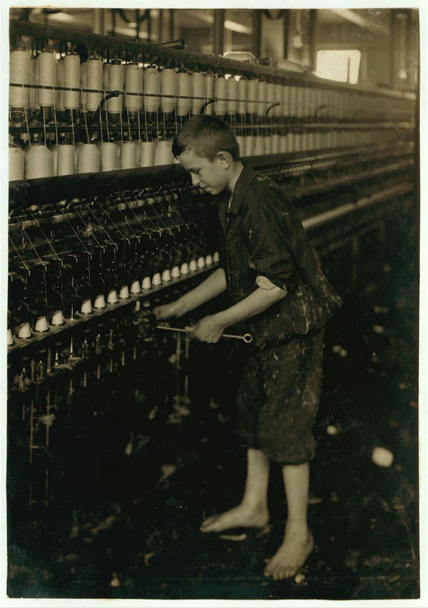 Cleaner and Sweeper - Spinning Department of American Linen Co. Location: Fall River, Massachusetts / Lewis W. Hine.