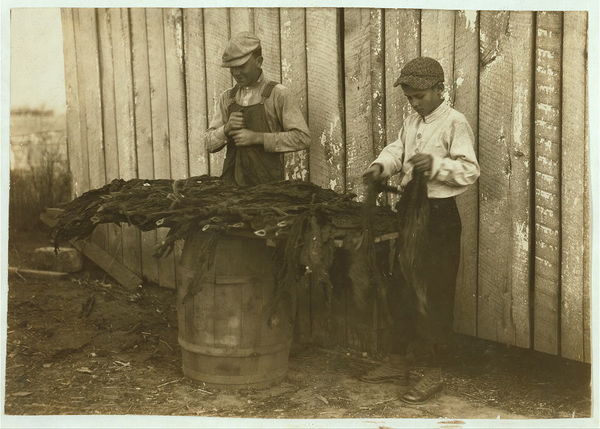 c/o W.A. Daniel - Route 2 - Woodburn, Ky. Lester Daniel, ... years old and 17-year old cousin stripping tobacco. See Kentucky report and special card. Location: Woodburn, Kentucky / Lewis W. Hine