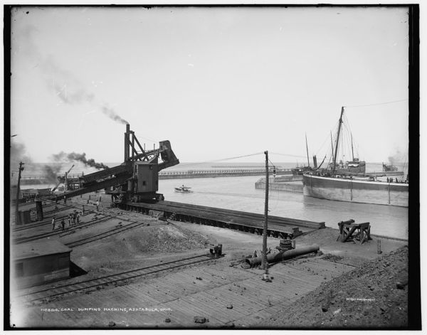 Unloading ore at L.S. & M.S. Lake Shore & Michigan Southern Ry. Co.'s docks, Ashtabula, Ohio