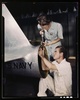 Mrs. Virginia Davis, a riveter in the assembly and repair department of the Naval Air Base, supervises Chas. Potter, a NYA trainee from Michigan; Corpus Christi, Texas
