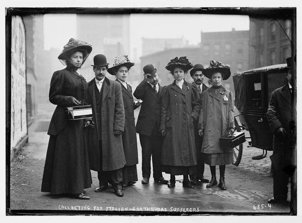Chevalier C. Barsotti, editor of "Il Progresso", and others collecting for Italian earthquake sufferers, East Side, New York
