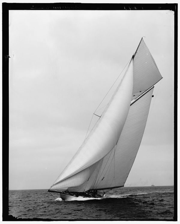 Fleet of boats, possibly part of America's Cup races