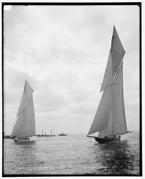 Shamrock II and Columbia maneuvering for the start, Oct. 1, 1901