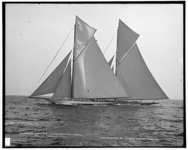 Columbia and Shamrock II maneuvering for the start, Oct. 3, 1901