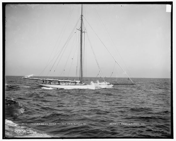 Columbia being towed to light ship
