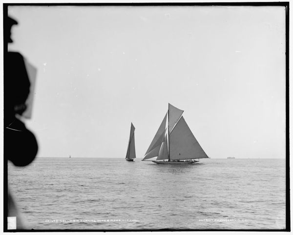 Columbia turning outer mark with Shamrock II behind